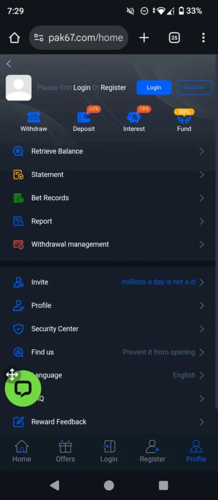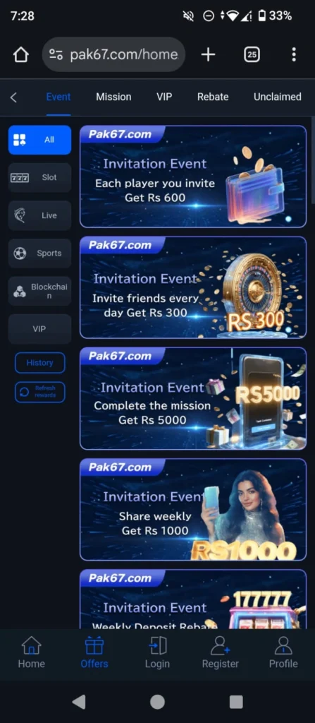 The Pak67 Pakistan has an excellent referral program, offering agents a 86% commission on the deposits made by the players they refer. In addition, this provides a fantastic opportunity to earn passive income by simply sharing the app with others.