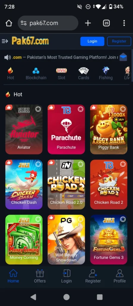 The Pak67 is a modern Pakistani-earning app that combines entertainment with the chance to win real money. In addition, it features a wide variety of games, ranging from classic casino games like poker and blackjack to slots, sports betting, and lottery games. Moreover, What makes Pak67 unique is its focus on providing a simple and straightforward gaming experience with real-money rewards.